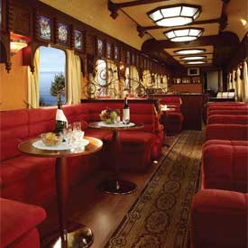 Four course meals and full breakfasts are served to the table in two dining cars. Additionally, there is a bar /observation car (the last car), which offers unobstructed views of the spectacular scenery.